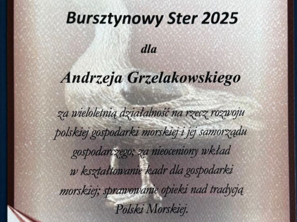 ale również momentem uhonorowania osób, które szczególnie przyczyniły się do rozwoju sektora. Nagrodę „Bursztynowy Ster” odebrał prof. dr hab. Andrzej Grzelakowski, Kierownik Katedry Logistyki i Systemów Transportowych na Wydziale Zarządzania i Nauk o Jakości Uniwersytetu Morskiego w Gdyni.