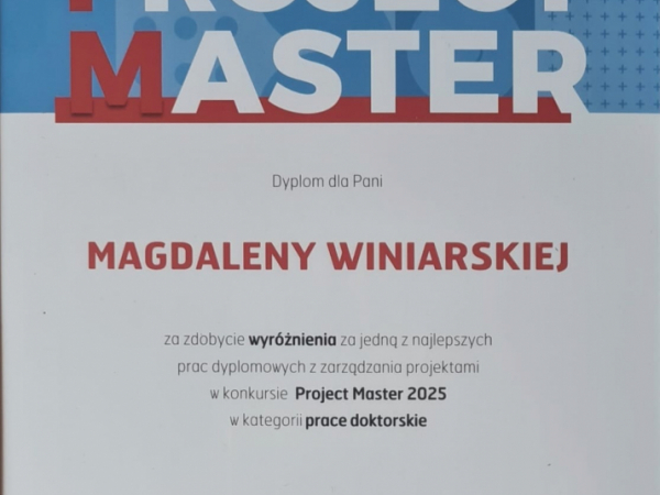 Wyróżnienie w konkursie PROJECT MASTER 2025